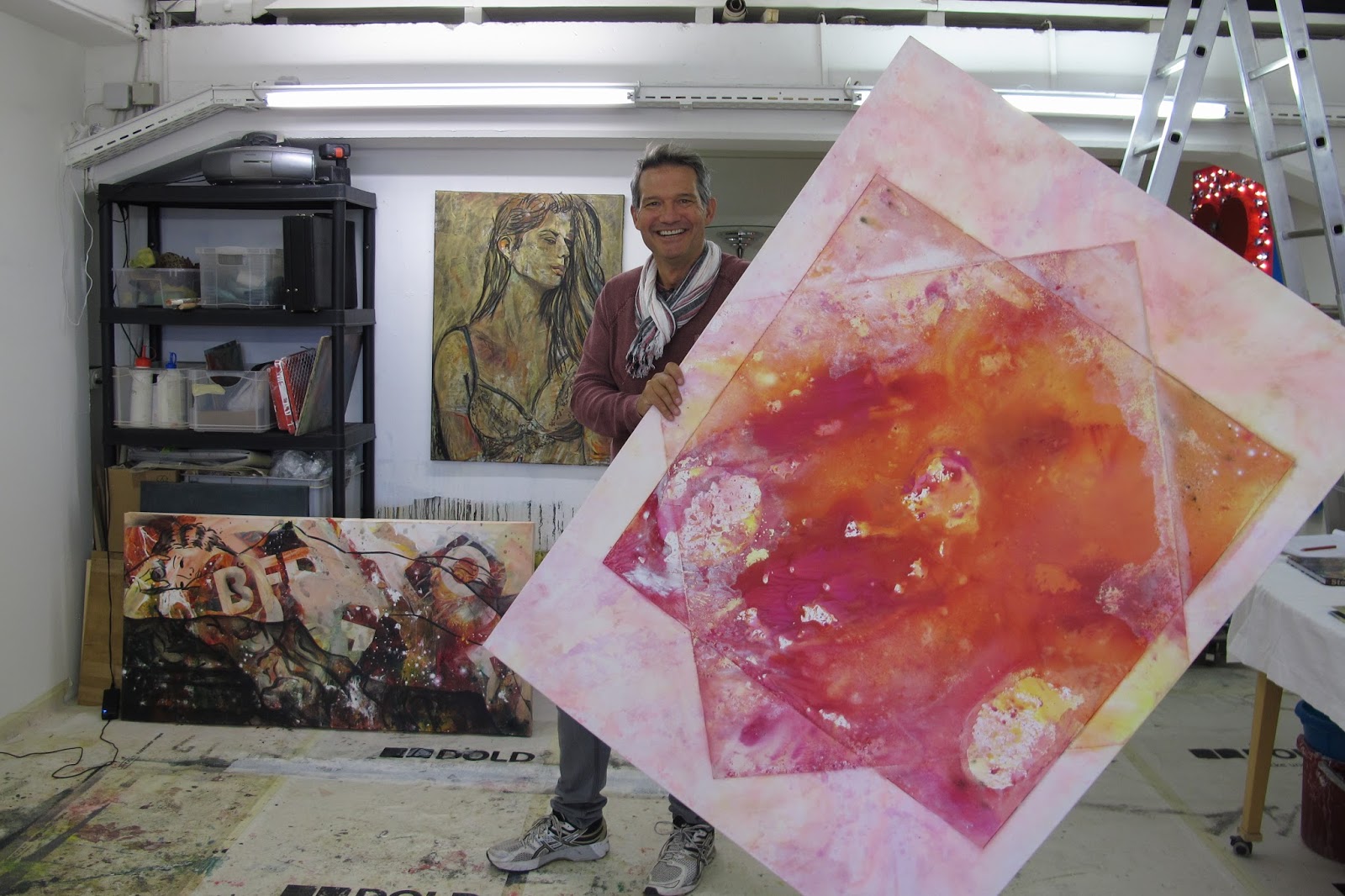 2004 Farbexperimente Zitat: „ Für mich selbst ist das Atelier ein Ort der Muss und der Inspiration für meine Malprojekte.“ |